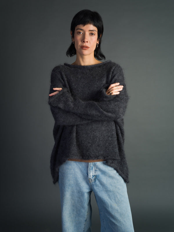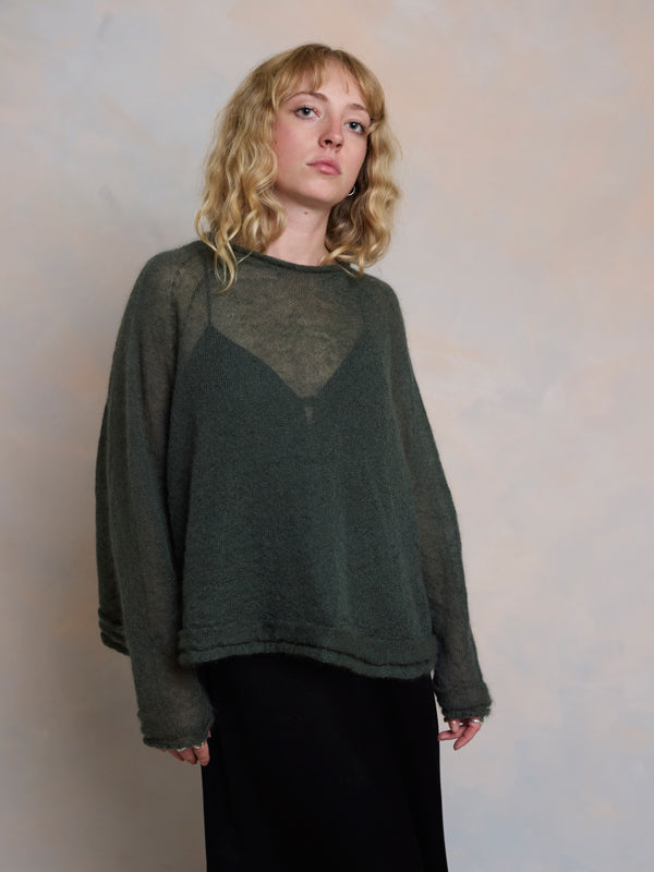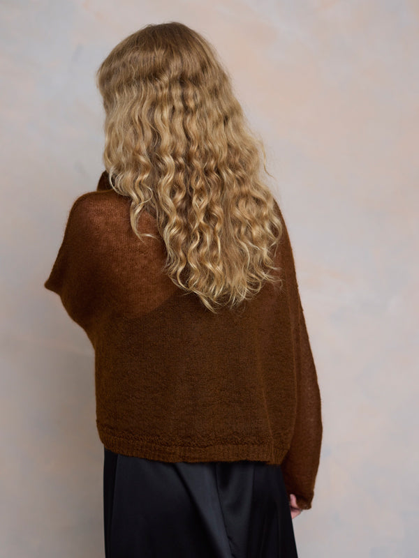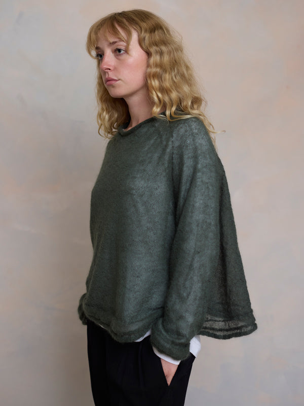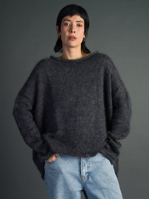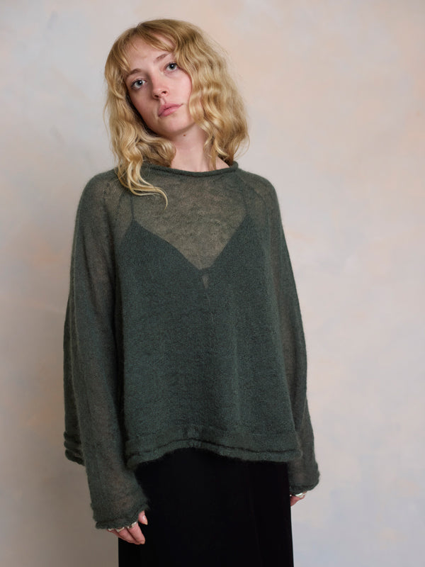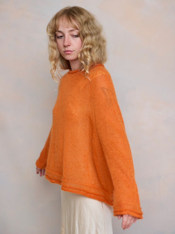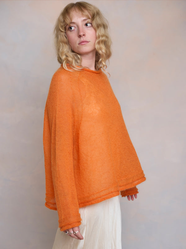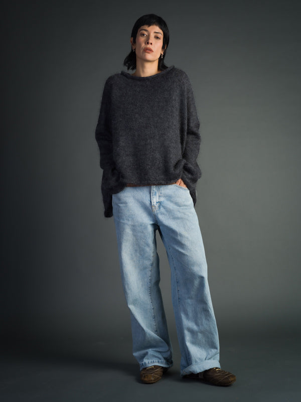 Scrumptiously warm, soft & floaty. Our classic roll neck jumper is now knitted with Mohair. Kid mohair + merino wool knitted sweater. Roll edge on cuffs, hem...