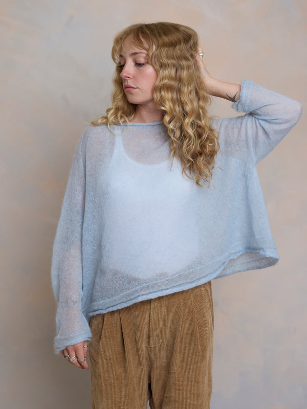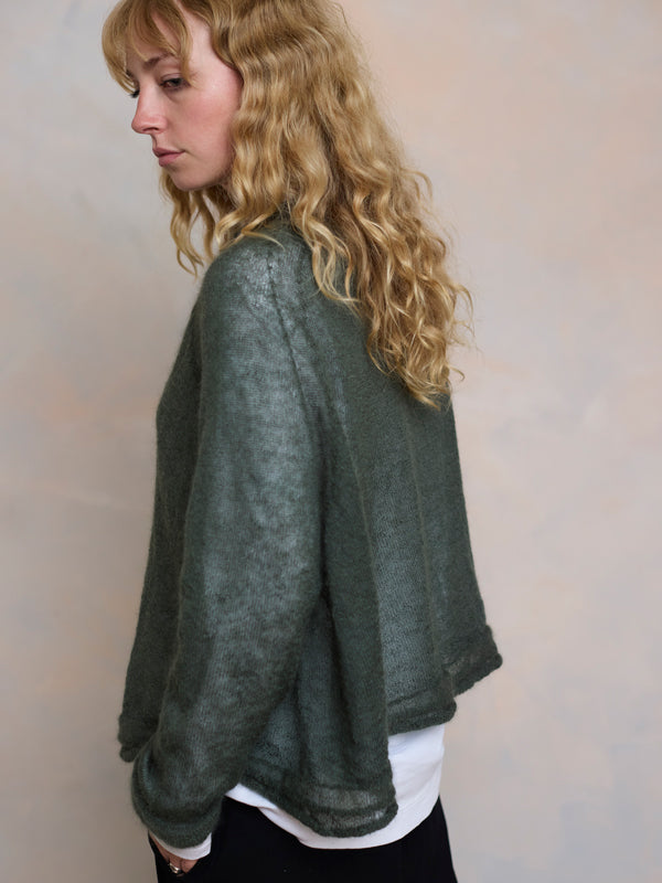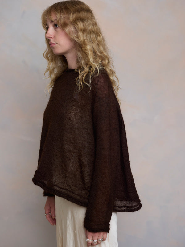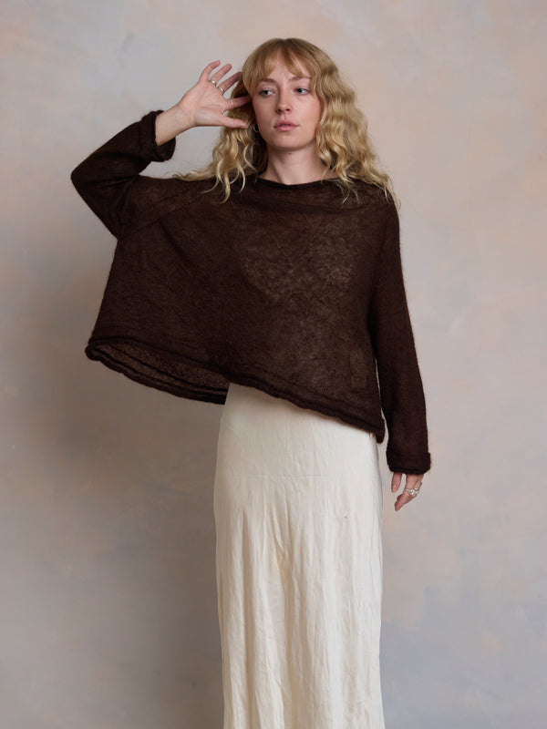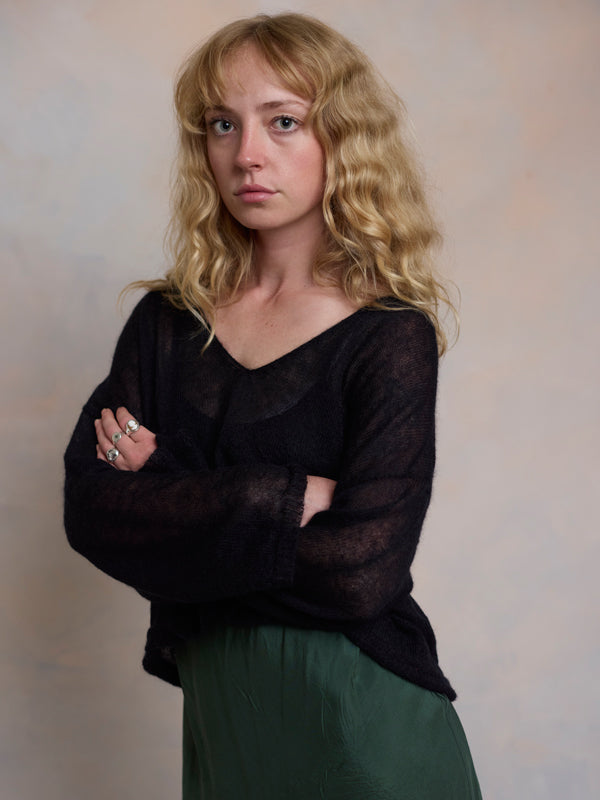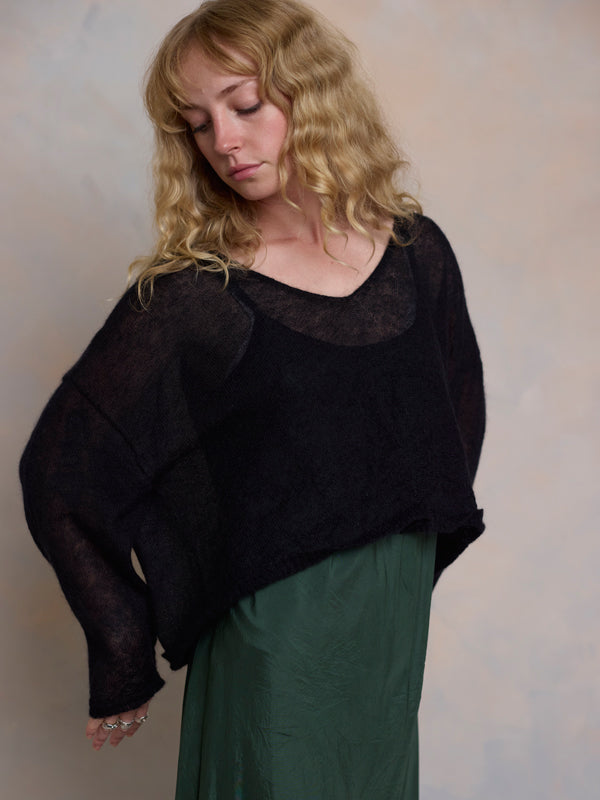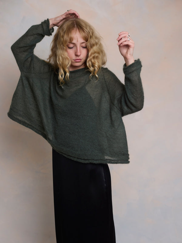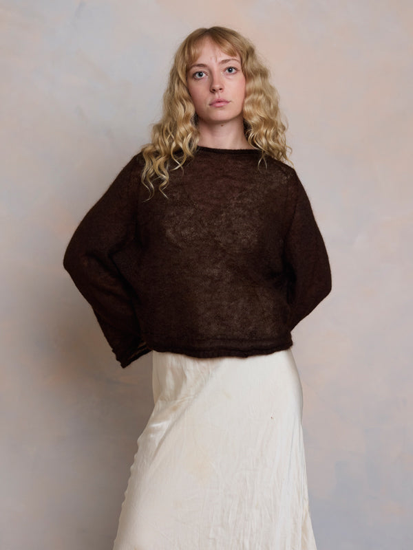 Scrumptiously warm, soft & floaty. Our classic roll neck jumper is now knitted with Mohair. Kid mohair + merino wool knitted sweater. Roll edge on cuffs, hem...