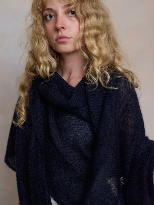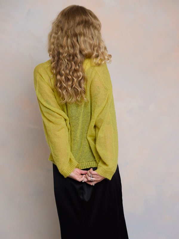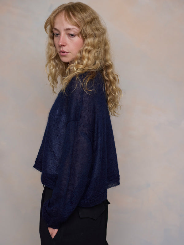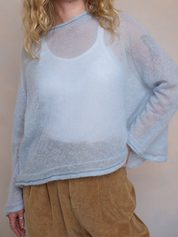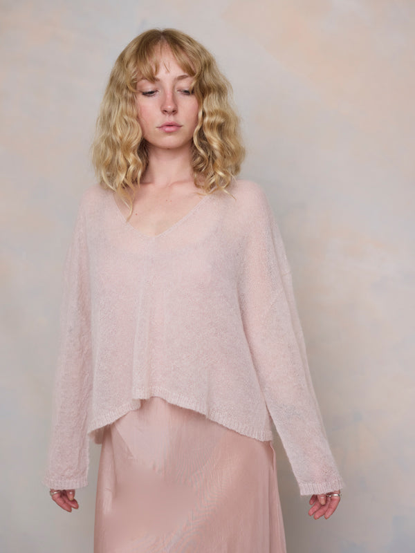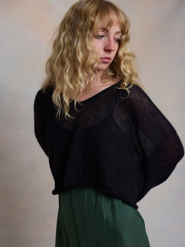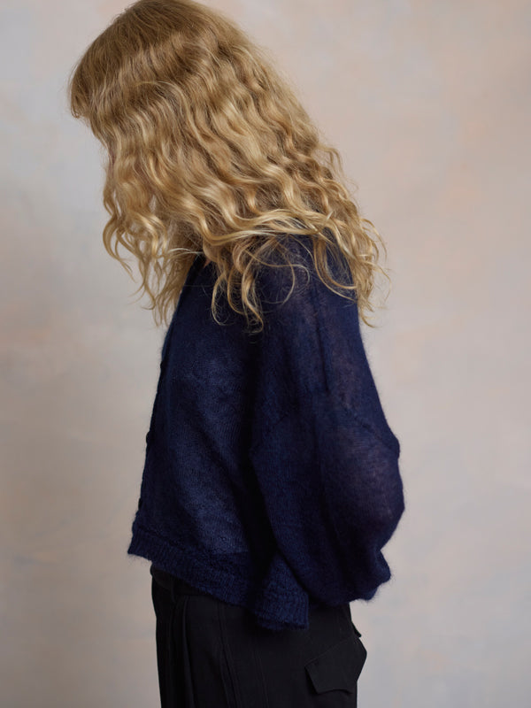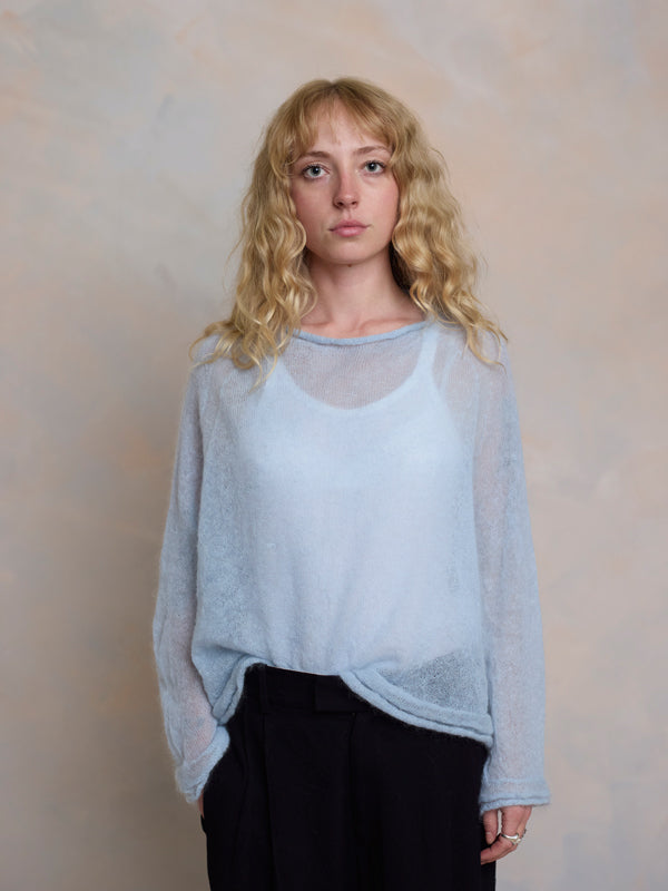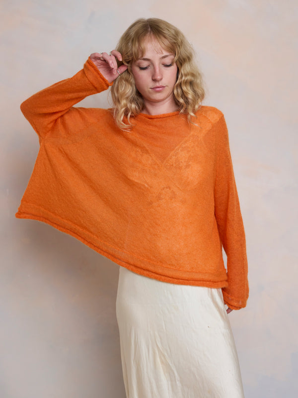 Scrumptiously warm, soft & floaty. Our classic roll neck jumper is now knitted with Mohair. Kid mohair + merino wool knitted sweater. Roll edge on cuffs, hem...