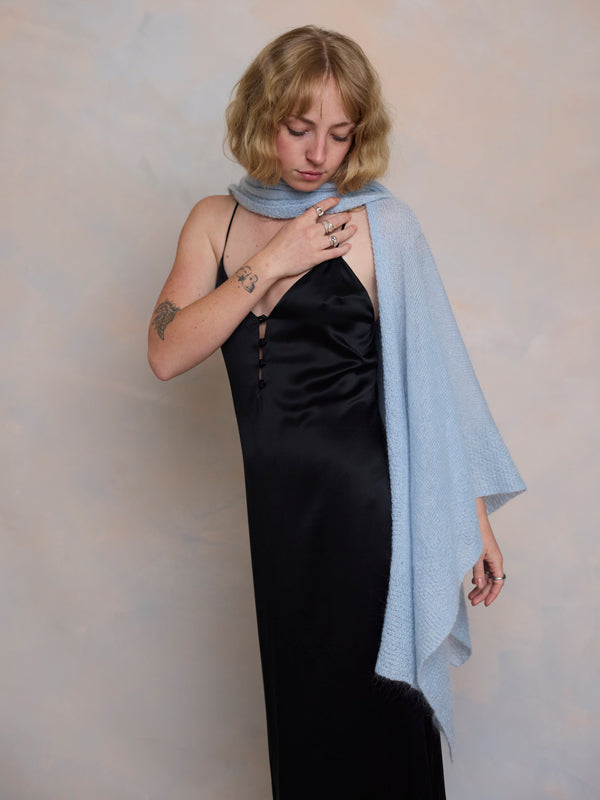 Scrumptiously warm, soft & floaty. Our classic roll neck jumper is now knitted with Mohair. Kid mohair + merino wool knitted sweater. Roll edge on cuffs,...