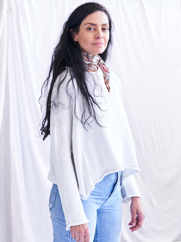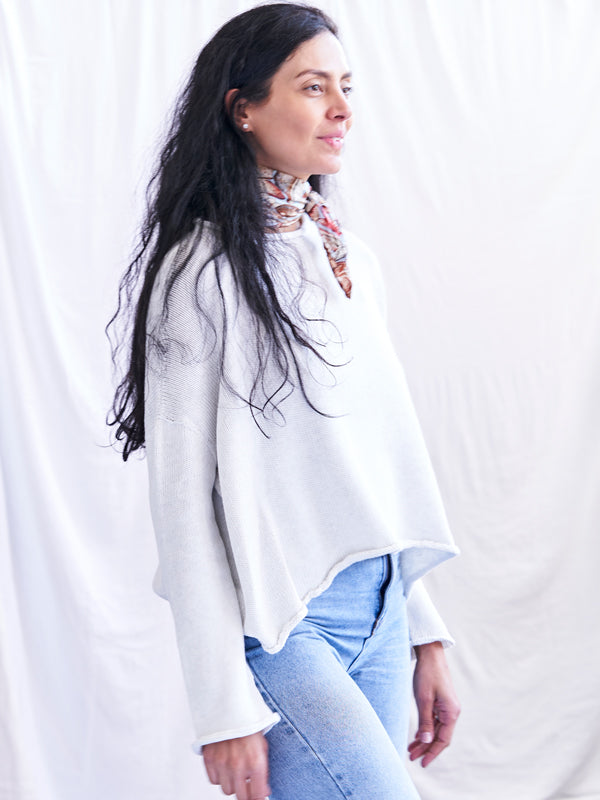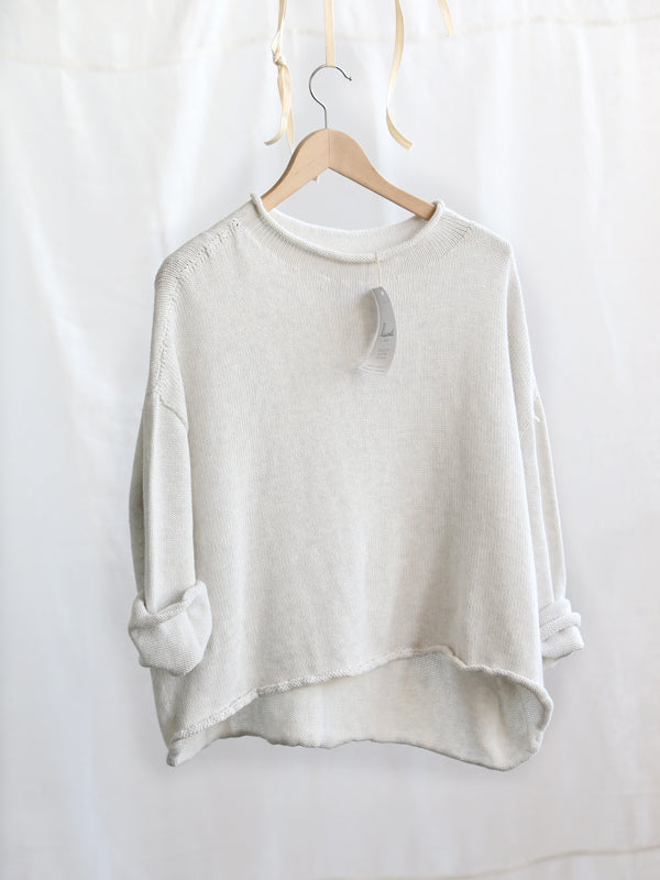 Pure Cotton Pullover with roll at neck and hem Trans-seasonal knits for relaxed easy living. Seamless knitting using zero waste technology100% pure combed melangé cottonEasyCare - gentle...