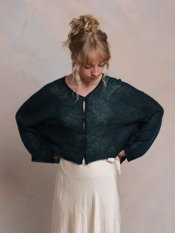 Gossamer soft & sheer kid mohair Raglan Sleeve Sweater.