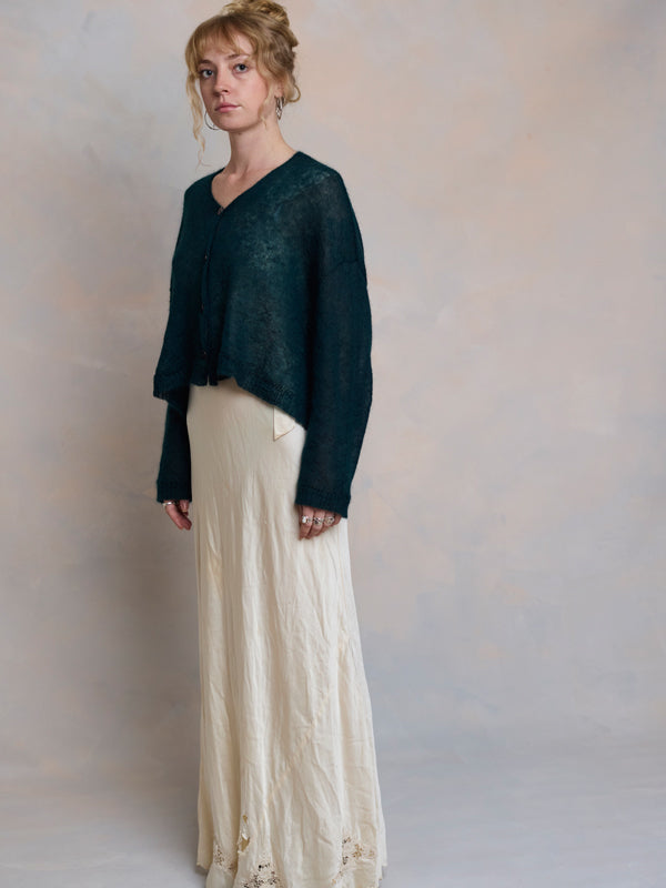 Detail on hem & cuff - loose and relaxed fit - a light & luscious layering piece.